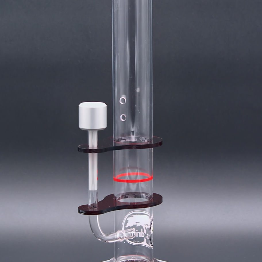 Our Classic Straight Series has a 2” round acrylic main draw tube, a .250 thick clear acrylic base, a .250 thick colored acrylic top base plate, (2) .250 thick colored acrylic mid trays, and a .500 OD down tube, the whole assembly is vertical (no angle) and is more typical to the standard product on the current glass market. The base plate assembly is large enough to keep the unit from falling over.